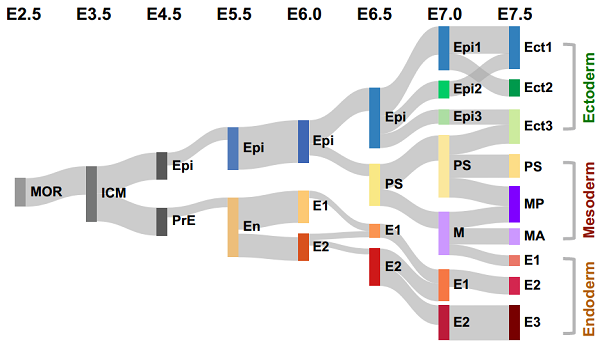 廣州生物院合作揭示小鼠早期胚胎發育過程中全胚層時空分子譜係