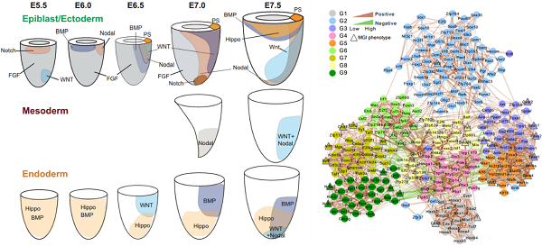 圖3. 胚層關鍵信號作用區域及關鍵轉錄因子調控網絡