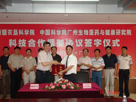 根據《關於進一步促進新疆經濟社會發展的若幹意見》(國發〔2007〕32號)文件精神,結合建設創新型國家的戰略部署和中國科學院加強與國家創新體係各單元聯合與合作的實際需求,6月19日,我院與新疆農墾科學院隆重舉行了科技合作框架協議簽字儀式。