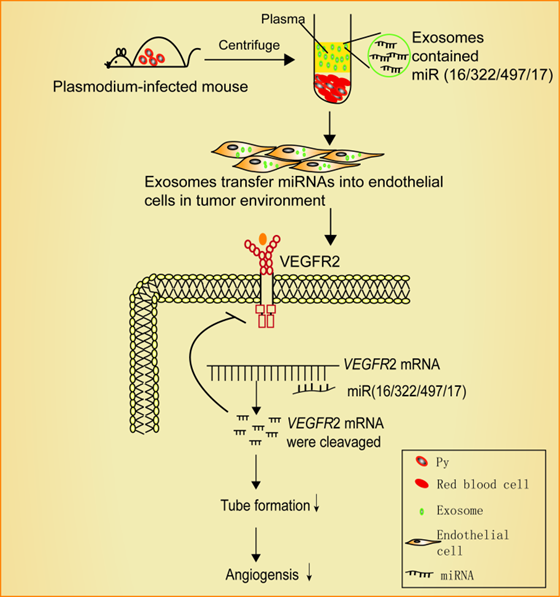 外泌體是細胞外膜泡,在細胞與細胞間通訊中起作用。在病原體感染宿主時,外泌體也發揮重要作用。但是,在上述論文發表之前,科學家們並不清楚瘧原蟲感染宿主所產生的外泌體是否能夠抑製腫瘤血管生成,更不知道其中的分子機製。
