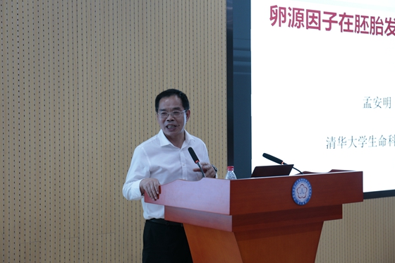 清華大學生命科學院孟安明院士做了題為“卵源因子在胚胎發育中的作用”的學術報告。孟安明院士深入淺出地講述了胚胎發育過程,圍繞其團隊研究的huluwa等相關卵源因子在胚胎發育中的重要作用展開介紹,分享了團隊的最新研究結果。此外,還與現場師生做了親切交流,討論了“人造胚胎”等領域內熱點和難點問題,極大地啟發了與會者的科研靈感。報告內容豐富詳盡,與會師生受益良多,反響熱烈。